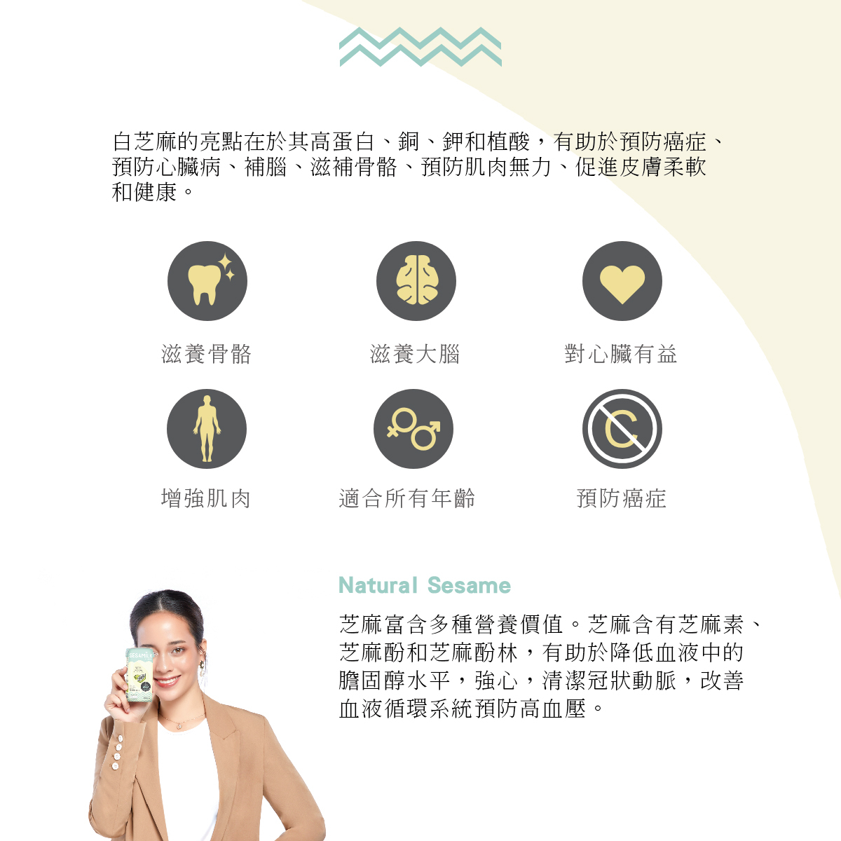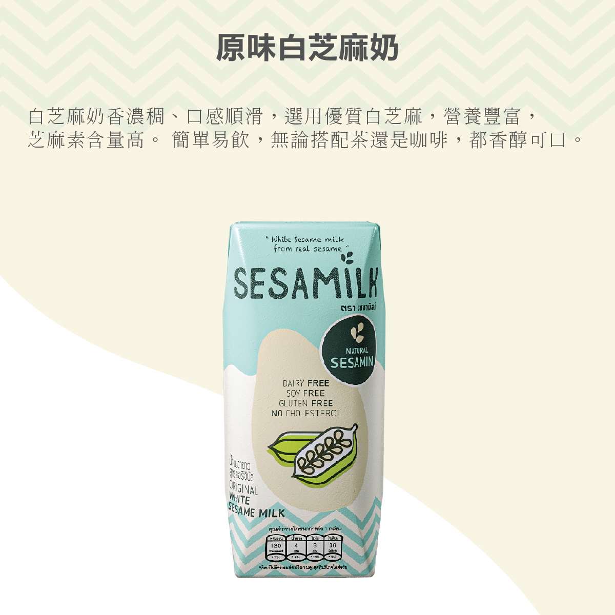 產品説眀 : 芝麻提取物要從芝麻中提取芝麻素,不僅僅是徹底研磨或咀嚼,Sesamilk 還使用芝麻提取技術獲得富含芝麻素物質高達 392 毫克的白芝麻奶。 所以一盒Sesamilk白芝麻奶富含人體必需的營養素。 食用提取物形式的芝麻奶可提供全部益處。